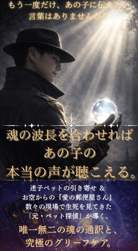 最初にお伝えしておきます。元々、私は「スピリチュアル完全否定派」の現実主義者でした。徹底的に論理と足を使って探す「物理的なペット専門探偵」として活動していた私が、なぜ今、目に見えない魂の波長を視ているのか。それには、避けては通れない壮絶な理由があります。