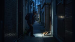 深夜帯の捜索となりましたが、飼い主様の協力もあり迅速にヒアリングを開始。敷地内を捜索すると、マンション1階の穴の奥にある「倉庫のような狭い空間」に猫ちゃんを発見しました。